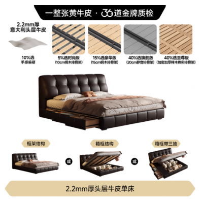 首页 > 家具 > 生活家居 > 政府补贴泡芙床复古奶油风主卧双人床意式极简中古风储物真皮床